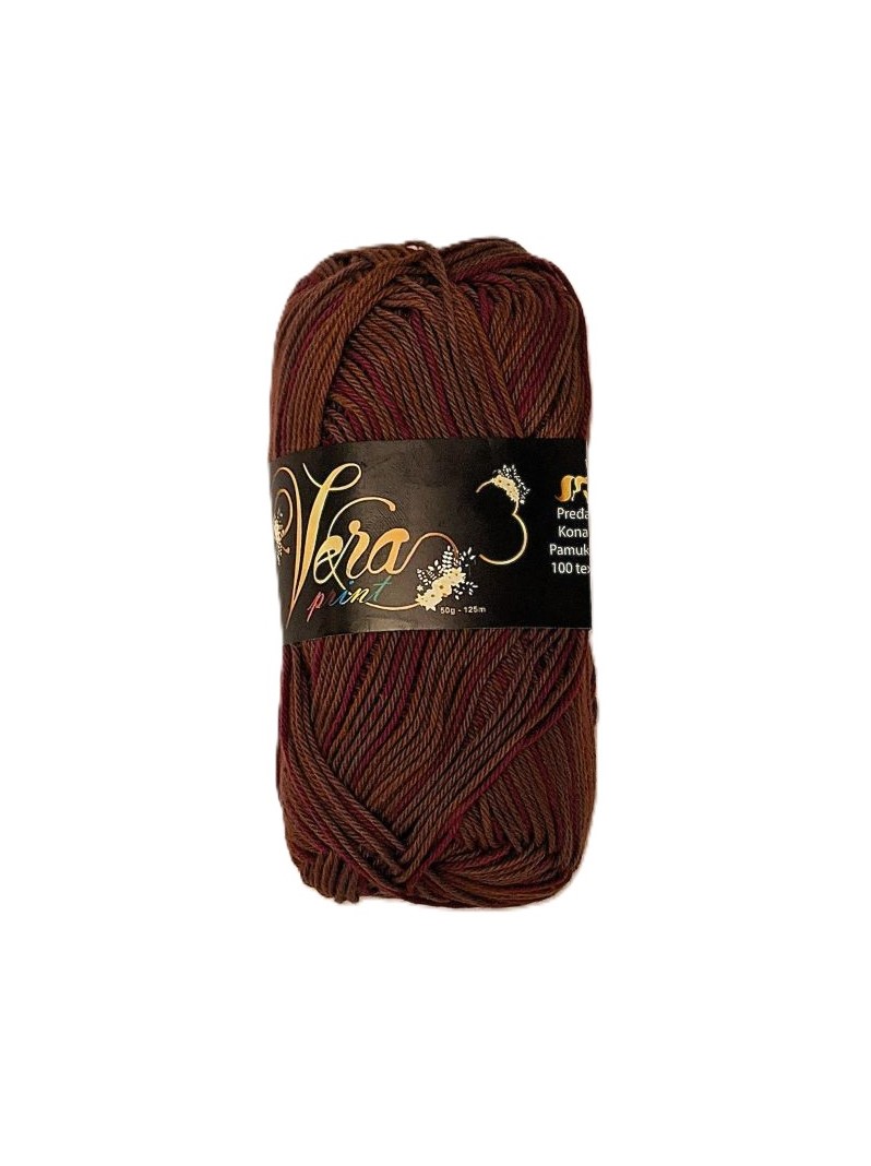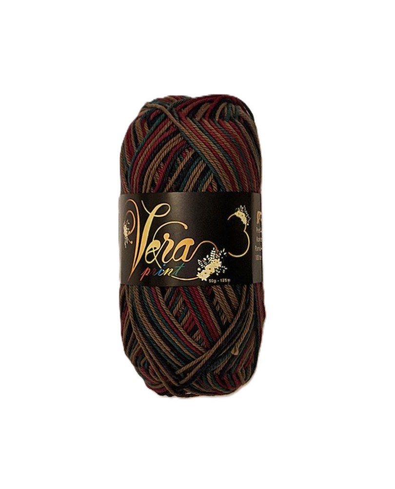 Vera 3 Print je najtraženiji konac za ručni rad,domaćeg proizvođača Yumco. U pitanju je češljano,gazirano,mercerizirano pamučno predivo koje je dostupno u širokoj paleti boja.